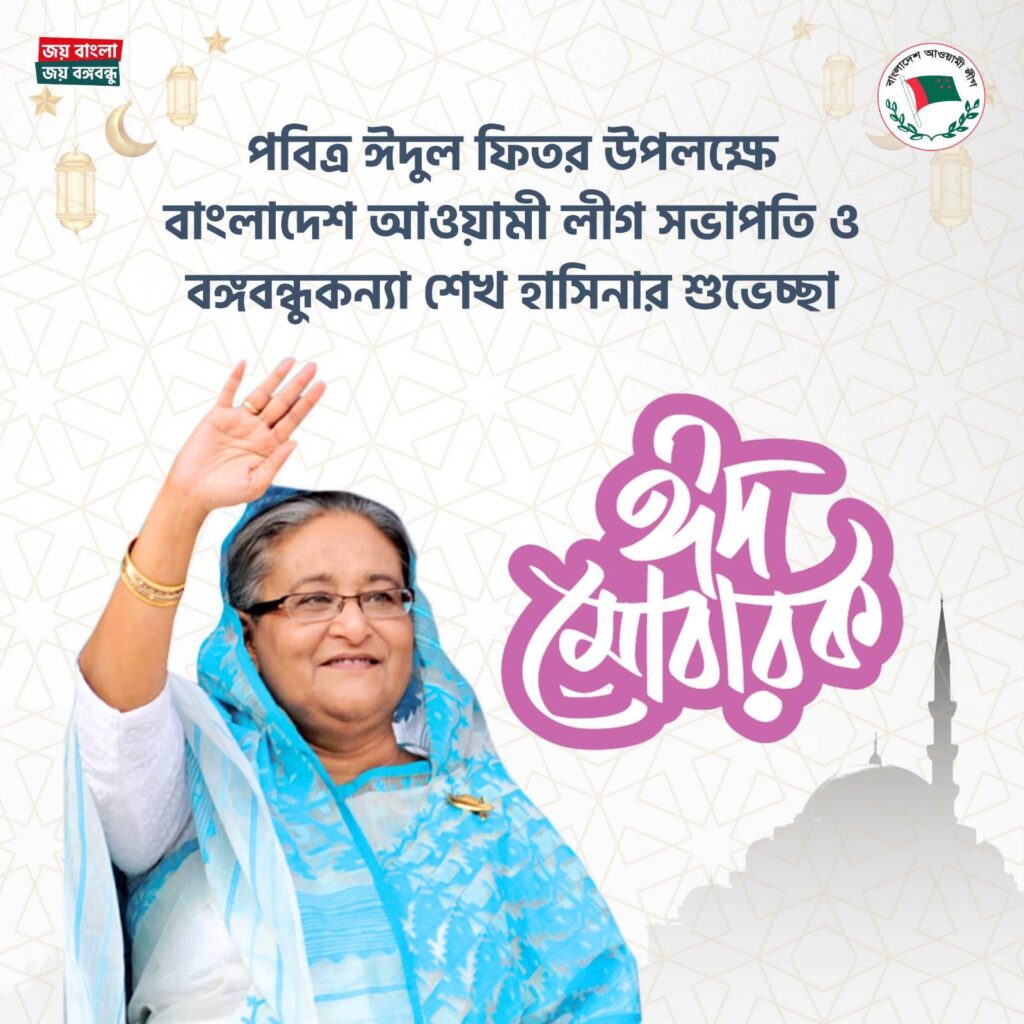পবিত্র ঈদুল ফিতর উপলক্ষে বাংলাদেশ আওয়ামী লীগ সভাপতি ও বঙ্গবন্ধুকন্যা শেখ হাসিনার শুভেচ্ছা