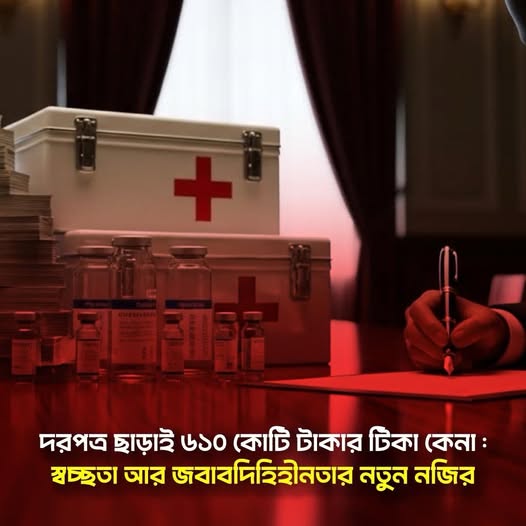 দরপত্র ছাড়াই ৬১০ কোটি টাকার টিকা কেনা : স্বচ্ছতা আর জবাবদিহিহীনতার নতুন নজির