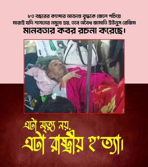 ৮০ বছরের ক্যান্সার আক্রান্ত বৃদ্ধকে জেলে পচিয়ে মারাই যদি শাসনের নমুনা হয়