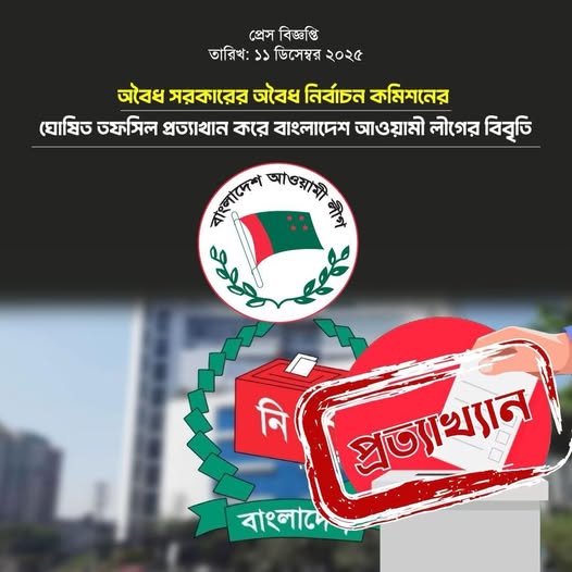 অবৈধ সরকারের অবৈধ নির্বাচন কমিশনের ঘোষিত তফসিল প্রত্যাখান করে বাংলাদেশ আওয়ামী লীগের বিবৃতি