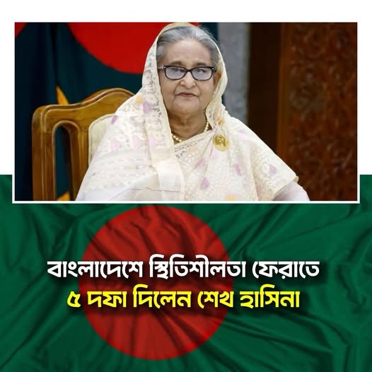 বাংলাদেশের চলমান সংকট নিরসনে আওয়ামী লীগ সভাপতি বঙ্গবন্ধু কন্যা জননেত্রী শেখ হাসিনা উত্থাপিত ৫ -দফা