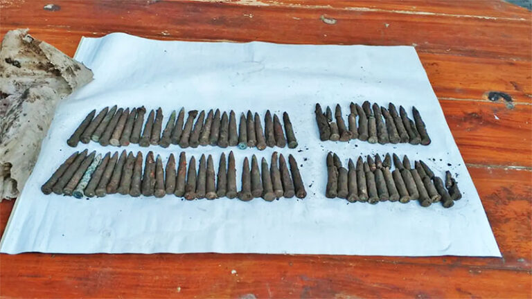 চুলার জন্য মাটি খুঁড়তেই বেরিয়ে এলো পলিথিনে মোড়ানো মেশিনগানের গুলি