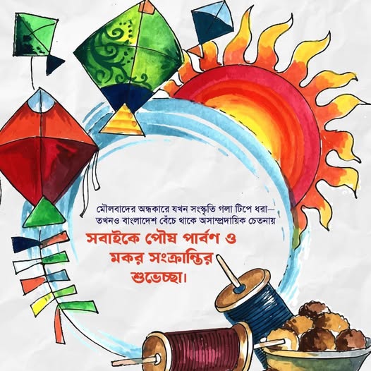 মৌলবাদের অন্ধকারে যখন সংস্কৃতি গলা টিপে ধরা—তখনও বাংলাদেশ বেঁচে থাকে অসাম্প্রদায়িক চেতনায়…. সবাইকে পৌষ পার্বণ ও মকর সংক্রান্তির শুভেচ্ছা।