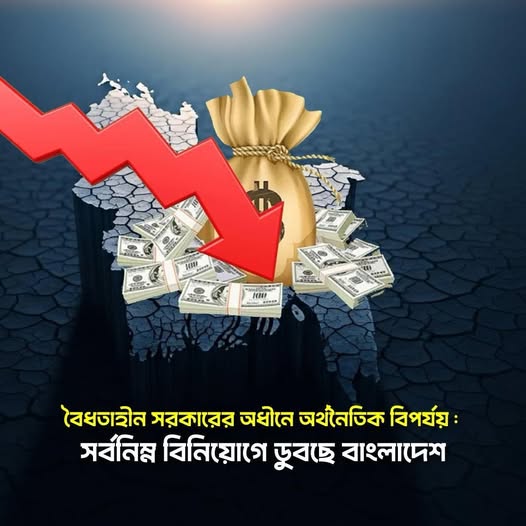 বৈধতাহীন সরকারের অধীনে অর্থনৈতিক বিপর্যয় : সর্বনিম্ন বিনিয়োগে ডুবছে বাংলাদেশ