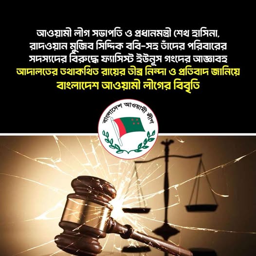 ফ্যাসিস্ট ইউনূস গংদের আজ্ঞাবহ আদালতের তথাকথিত রায়ের তীব্র নিন্দা ও প্রতিবাদ
