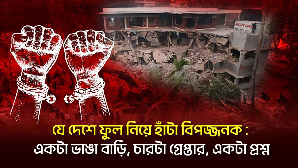 যে দেশে ফুল নিয়ে হাঁটা বিপজ্জনক : একটা ভাঙা বাড়ি, চারটা গ্রেপ্তার, একটা প্রশ্ন