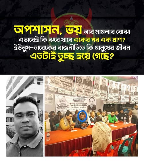 অপশাসন, ভয় আর মামলার বোঝা—এভাবেই কি ঝরে যাবে একের পর এক প্রাণ? ইউনুস–তারেকের রাজনীতিতে কি মানুষের জীবন এতটাই তুচ্ছ হয়ে গেছে?