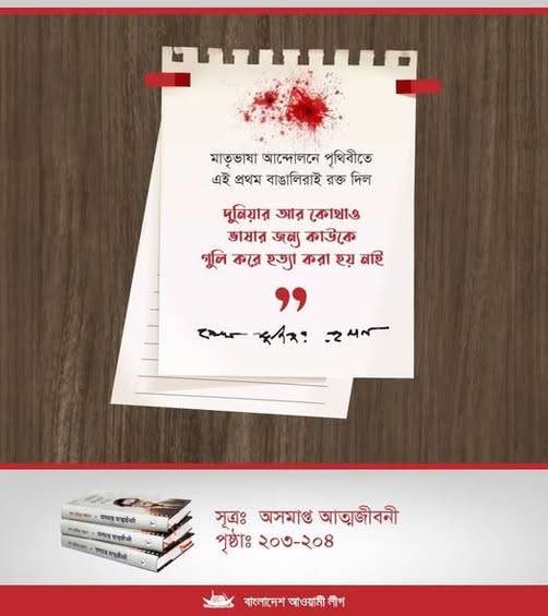 শহীদ দিবস ও আন্তর্জাতিক মাতৃভাষা দিবস উপলক্ষে বাংলাদেশ আওয়ামী লীগ সভাপতি বঙ্গবন্ধুকন্যা শেখ হাসিনার বাণী