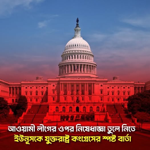 আওয়ামী লীগের ওপর নিষেধাজ্ঞা তুলে নিতে ইউনূসকে যুক্তরাষ্ট্র কংগ্রেসের স্পষ্ট বার্তা