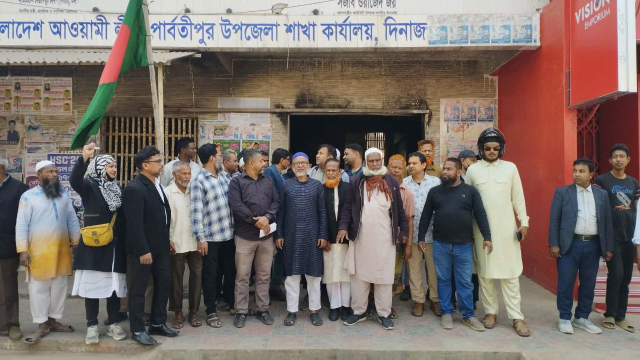 বাংলাদেশ আওয়ামী লীগ, যুবলীগ এবং ছাত্রলীগ পার্বতীপুর উপজেলা শাখা, দিনাজপুর এর উদ্যোগে পার্বতীপুর উপজেলা আওয়ামী লীগের কার্যালয়ে জাতীয় পতাকা উত্তোলন।