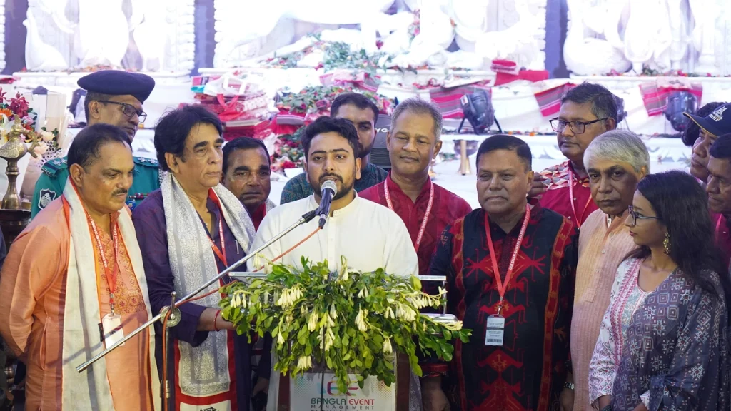 তখন সে গুলি হিন্দু মুসলমান ভাগ করেনি। এদিন গুলশান বনানী সার্বজনীন পূজা ফাউন্ডেশনের উদ্যোগে বনানী মাঠে স্থাপিত পূজামণ্ডপ এবং মহানগর সার্বজনীন পূজা কমিটি উত্তরা পশ্চিম থানা শাখা আয়োজিত পূজামণ্ডপ পরিদর্শন করেন উপদেষ্টা নাহিদ ইসলাম। এ সময় তিনি আরও বলেন, নতুন বাংলাদেশে কাজ করছি। আমরা যেভাবে ধর্ম, বর্ণ নির্বিশেষে ফ্যাসিস্ট সরকারের বিরুদ্ধে লড়াই করেছি, একইভাবে নতুন বাংলাদেশ গঠনের ক্ষেত্রে জাতীয় স্বার্থের কথা মাথায় রেখে কাঁধে কাঁধ মিলিয়ে কাজ করতে চাই। আমরা সর্বাত্মকভাবে চেষ্টা করেছি সনাতন ধর্মাবলম্বীদের পাশে থাকার। তার‌ই অংশ হিসেবে এবারের দুর্গাৎসবে একদিনের ছুটি বৃদ্ধি করা হয়েছে। পরিদর্শনকালে সংখ্যালঘু অধিকার আন্দোলনের শিক্ষার্থী প্রতিনিধি সুস্মিতা কর, লিংকন দত্তসহ স্থানীয় সনাতন ধর্মের নেতৃবৃন্দ উপস্থিত ছিলেন।