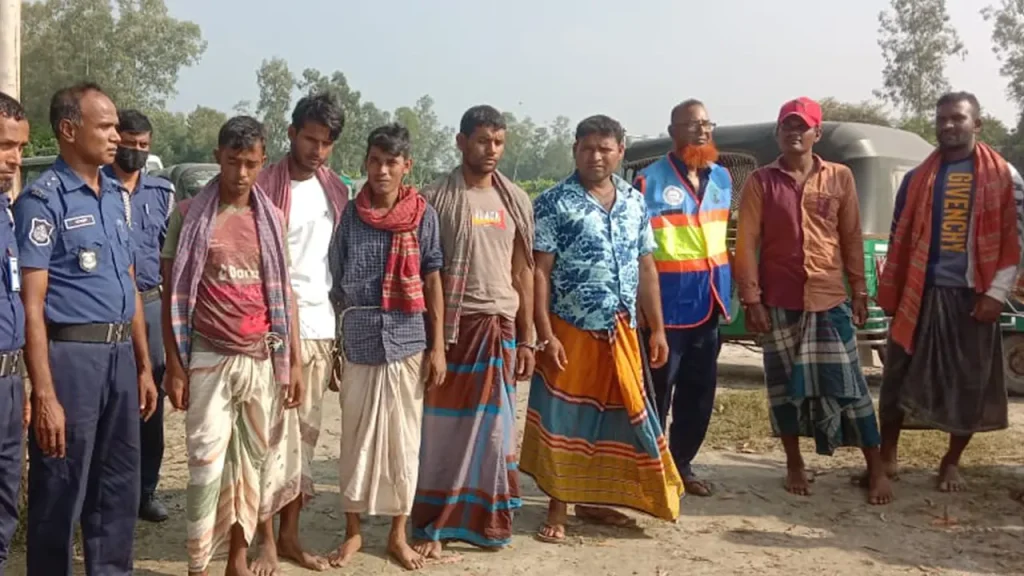 কারাদণ্ডপ্রাপ্তরা হলেন- সিরাজগঞ্জের বেলকুচি উপজেলার কিরাতখোল গ্রামের আবুল শেখের ছেলে মোতালেব, একই উপজেলার দেলুয়া গ্রামের গফুর শেখের ছেলে আবু হাসান, আবু সামার ছেলে আবু হানিফ, বারেক মোল্লার ছেলে মামুন মোল্লা, নজরুলের ছেলে মনিরুল, মান্নানের ছেলে রফিক, আরিফ ও এলাহি আকন্দের ছেলে শহিদ।