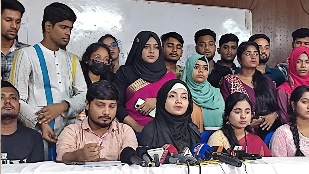 শনিবার (২৬ অক্টোবর) বিকেল ৪টায় ঢাকা কলেজের শহীদ আ ন ম নজিব উদ্দিন খান খুররম অডিটরিয়ামে এক সংবাদ সম্মেলনে এ আলটিমেটাম দেওয়া হয়। পাশাপাশি নিজ নিজ ক্যাম্পাসে তিন দিনের কর্মসূচি দিয়েছেন শিক্ষার্থীরা।
