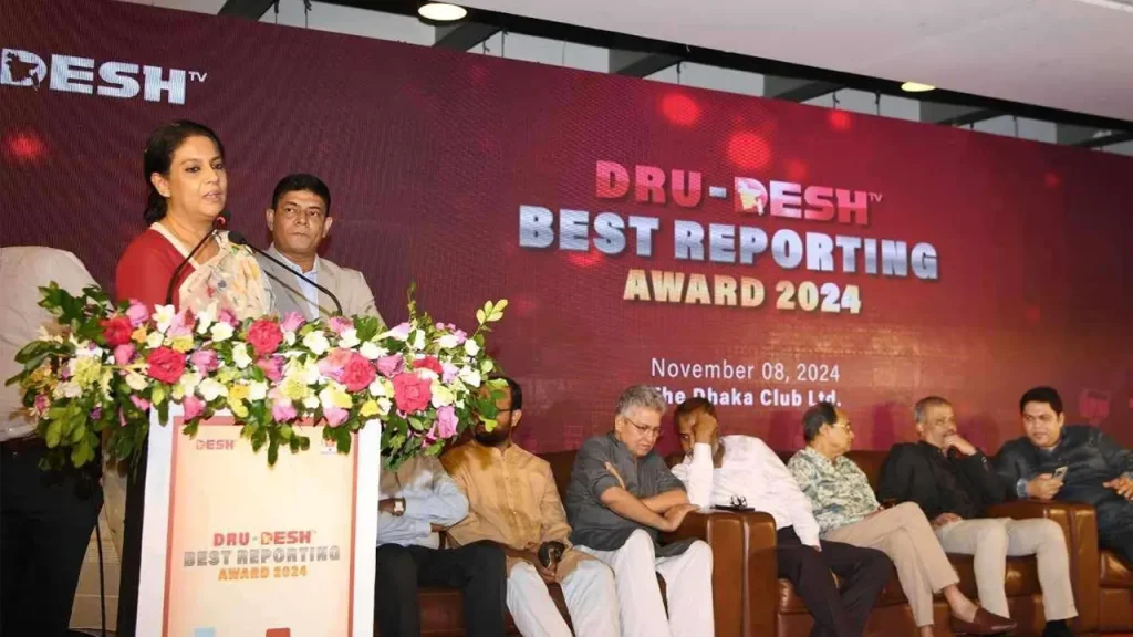 কাজ করে। সাহসী ও নিরপেক্ষ রিপোর্টিং দেশকে সঠিক পথে পরিচালিত করতে সহায়ক হবে। অনুষ্ঠানে প্রধান অতিথি ছিলেন আইন বিচার ও সংসদ বিষয়ক উপদেষ্টা আসিফ নজরুল। ডিআরইউ সভাপতি শুকুর আলী শুভ ও সাধারণ সম্পাদক মহিউদ্দিনসহ অন্য সাংবাদিক নেতা উপস্থিত ছিলেন। পুরস্কার বিজয়ীদের মধ্যে প্রিন্ট, অনলাইন, টেলিভিশন ও রেডিও মাধ্যমের বিজয়ীদের নাম ঘোষণা করা হয়। প্রিন্ট মিডিয়া, অনলাইন, টেলিভিশন, রেডিও সবার জন্য উন্মুক্ত ক্যটাগ্যারিতে বিজয়ী আবু সালেহ রনি; প্রিন্ট মিডিয়া ক্যাটাগরিতে প্রথম পুরষ্কার পান মাহমুদুল হাসান (নয়ন); দ্বিতীয় পুরস্কার আহসান হাবীব রাসেল; তৃতীয় পুরষ্কার (যুগ্মভাবে) জসীম উদ্দিন হারুন এবং ফারহান ফেরদৌস। ইলেকট্রনিক মিডিয়া ক্যাটাগরিতে প্রথম পুরস্কার পান মুহাম্মদ আরাফাতুল মোমেন আদিত্য আরাফাত; দ্বিতীয় পুরস্কার