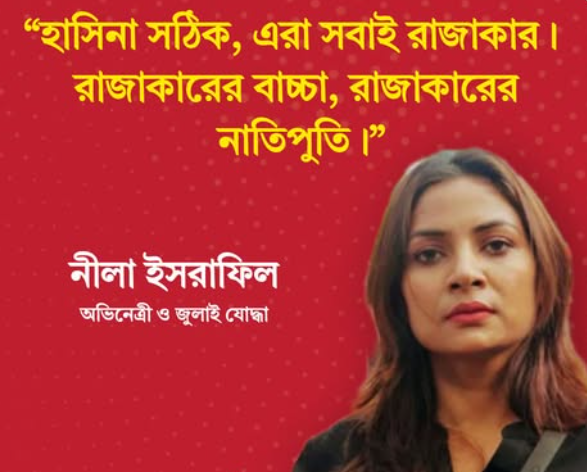 ‘হাসিনা সঠিক, এরা সবাই রাজাকার’—ফেসবুকে বিস্ফোরক মন্তব্য নীলা ইসরাফিলের