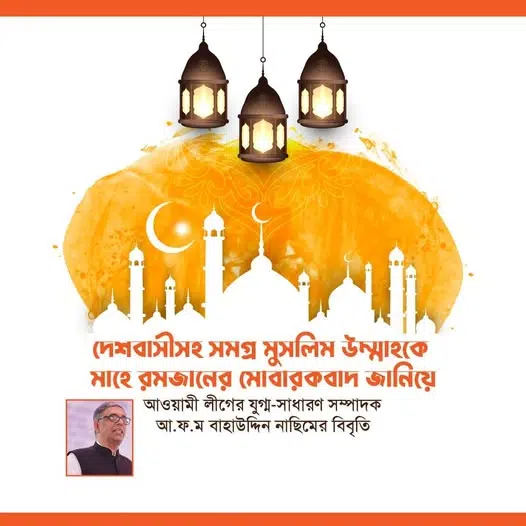 দেশবাসীসহ সমগ্র মুসলিম উম্মাহকে মাহে রমজানের মোবারকবাদ জানিয়ে আওয়ামী লীগের যুগ্ম-সাধারণ সম্পাদক আ.ফ.ম বাহাউদ্দিন নাছিমের বিবৃতি