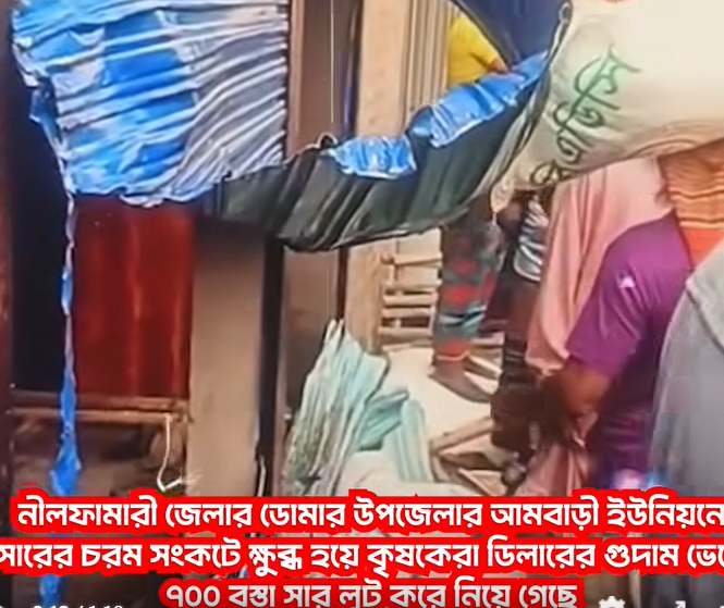 বিএনপি–জামায়াত আমলের রক্তমাখা দিনগুলোর প্রতিচ্ছবি আজ আবার গ্রামেগঞ্জে! নীলফামারী জেলার ডোমার উপজেলার আমবাড়ী ইউনিয়নে সারের চরম সংকটে ক্ষুব্ধ হয়ে কৃষকেরা ডিলারের গুদাম ভেঙে ৭০০ বস্তা সার লুট করে নিয়ে গেছে। জনগণের খাদ্য উৎপাদক আজ সারহীন—আর শাসকেরা উন্নয়ন আর স্বপ্নের ভাষণ পড়ছে কানে তুলো গুঁজে! বিএনপি–জামায়াত জোট সরকারের আমলে যেমন কৃষককে সারের জন্য গুলি খেতে হয়েছে, মাঠে মরতে হয়েছে, আজ সেই ভয়ঙ্কর ইতিহাস আবার ফিরে আসছে। অবৈধ জামাতি ইউনুস প্রশাসন দেশকে ধীরে ধীরে টেনে নিয়ে যাচ্ছে সেই শ্বাসরুদ্ধ অমানিশার দিকে—যেখানে সারের অভাব ছিল মৃত্যু, আর কৃষকের জীবনের দাম ছিল শূন্য! শেখ হাসিনার সময়ে কৃষক অবাধে সার পেত, ভুর্তুকি পেত, মাঠ ছিল সবুজ, ঘর