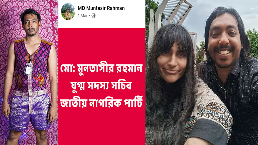 কিছু ছবি দিলাম: মো. মুনতাসির রহমান, তার সাথে সাহারা চৌধুরী, মুনতাসিরের অনলাইন অনুষ্ঠানে পর্নগ্রাফিক ভিডিও চলাকালীন মুহূর্ত, নিজের এনসিপি থেকে যুগ্ম সদস্য সচিব হওয়ার ঘোষণা। আর তার পার্টি ভণ্ডুল হওয়ার একটি নিউজ লিংক।