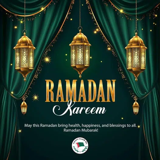 মিলিয়ে রমজান এক অনন্য আধ্যাত্মিক আবহ তৈরি করে। পরিবার-পরিজনের সঙ্গে ইফতার ও সেহরির আনন্দ পারস্পরিক সৌহার্দ্য ও সম্প্রীতিকে আরও দৃঢ় করে তোলে। পবিত্র রমজানের এই মহিমান্বিত মাসে বাংলাদেশ আওয়ামী লীগ দেশের সকল মুসলিম ভাই-বোনের প্রতি আন্তরিক শুভেচ্ছা ও মোবারকবাদ জানাচ্ছে। আমরা কামনা করি, এই রমজান সবার জীবনে শান্তি, কল্যাণ ও সমৃদ্ধি বয়ে আনুক। রমজানের শিক্ষা ধারণ করে আমরা যেন একটি মানবিক, ন্যায়ভিত্তিক ও সম্প্রীতির বাংলাদেশ গড়ে তুলতে পারি—এই হোক আমাদের অঙ্গীকার।