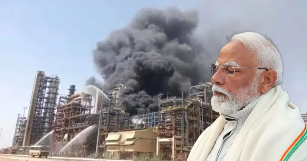 মোদির উদ্বোধনের আগেই আগুনে পুড়ল ভারতের তেল শোধনাগার