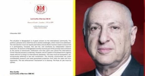 বাংলাদেশের পরিস্থিতি নিয়ে ব্রিটিশ লর্ড কার্লাইলের গভীর উদ্বেগ: অংশগ্রহণমূলক নির্বাচন ও আইনের শাসন প্রতিষ্ঠার আহ্বান