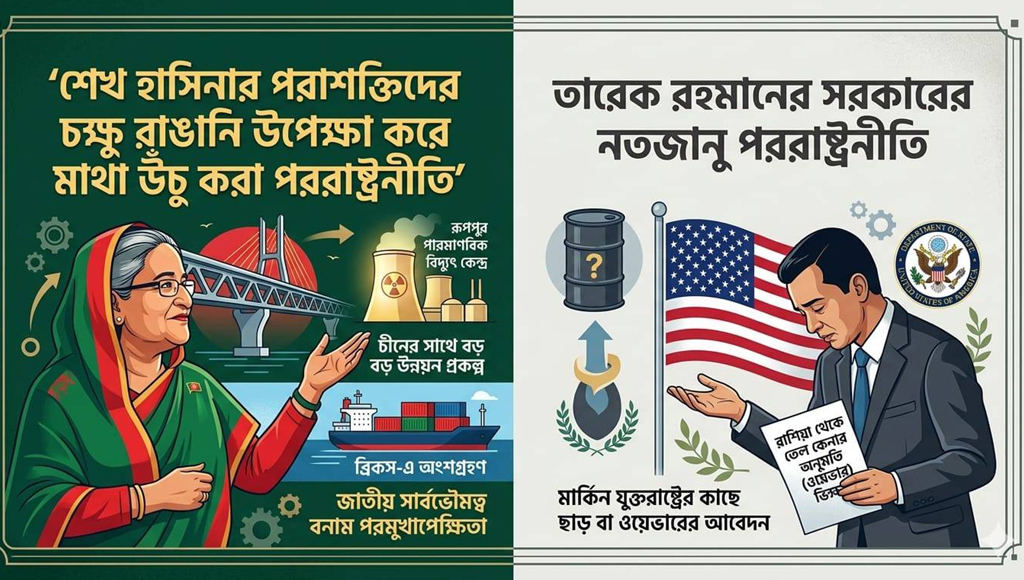দেশগুলো নিজেদের সার্বভৌম অধিকার ব্যবহার করে স্বাধীনভাবে তেল কিনছে সেখানে বাংলাদেশের বর্তমান সরকারকে মার্কিন দপ্তরের অনুমতির জন্য অনুনয় করতে হচ্ছে। প্রধানমন্ত্রী থাকাকালীন শেখ হাসিনা কখনোই এভাবে বিদেশের কাছে হাত পেতে বা অনুমতি নিয়ে জাতীয় স্বার্থ রক্ষার সিদ্ধান্ত নিতেন না। আজ রাশিয়ার মতো অকৃত্রিম বন্ধুর কাছ থেকে তেল কিনতেও যদি তৃতীয় কোনো শক্তির পা ধরে বসে থাকতে হয় তবে এর চেয়ে বড় নতজানু পররাষ্ট্রনীতি আর কী হতে পারে? ​ইতিহাস সাক্ষী দেবে শেখ হাসিনা ছিলেন এমন একজন রাষ্ট্রনায়ক যিনি বৈশ্বিক মোড়লদের চোখ রাঙানিকে উপেক্ষা করে লাল সবুজের পতাকার মর্যাদা রক্ষা করেছিলেন। তিনি উন্নয়ন করেছেন কিন্তু সার্বভৌমত্বের বিনিময়ে নয়। ২০২৬ সালে যখন রূপপুরের বিদ্যুৎ জাতীয়