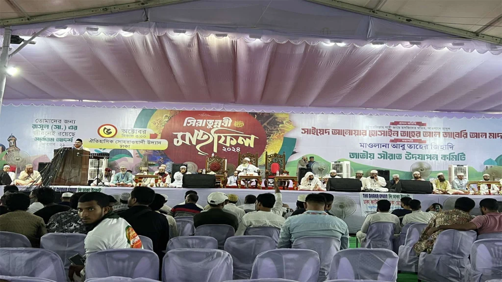 বাংলাদেশের ইতিহাসে প্রথমবারের মতো রাজধানীর সোহরাওয়ার্দী উদ্যানে অনুষ্ঠিত হচ্ছে সিরাত মাহফিল (সা.)।