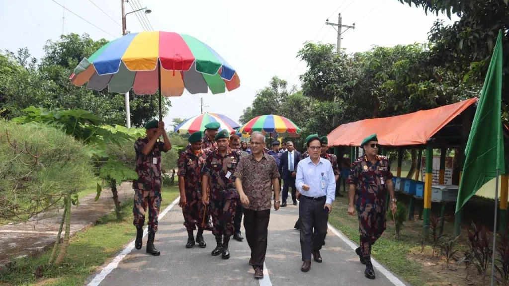 মহাপরিচালক মেজর জেনারেল মোহাম্মদ আশরাফুজ্জামান সিদ্দিকী, রংপুর রিজিয়ন কমান্ডার ব্রিগেডিয়ার জেনারেল এস এম জাহিদুর রহমান, রাজশাহী সেক্টর কমান্ডার কর্নেল মো. ইমরান ইবনে এ রউফ প্রমুখ উপস্থিত ছিলেন। এর আগে উপদেষ্টা বিজিবি রাজশাহী সেক্টর সদর দপ্তর ও রাজশাহী ব্যাটালিয়ন (১ বিজিবি)-এ কর্মরত অফিসারদের জন্য অনুষ্ঠিত দরবারে বক্তব্য রাখেন। তিনি সেখানে হাউস গার্ড পরিদর্শন করেন এবং পরিদর্শন বইয়ে স্বাক্ষর করেন। তা ছাড়া উপদেষ্টা আজ সকালে নওগাঁ জেলার পত্নীতলা উপজেলায় ১৪ বিজিবি পত্নীতলা ব্যাটালিয়ন পরিদর্শন করেন। সেখানে তিনি কৃষি জাদুঘর পরিদর্শন করেন এবং বিজিবি পরিচালিত কৃষি খামার ঘুরে দেখেন। পরিদর্শনকালে জনপ্রশাসন মন্ত্রণালয়ের সিনিয়র সচিব ড. মো. মোখলেস উর রহমান, পুলিশ মহাপরিদর্শক মো. ময়নুল ইসলাম এনডিসি