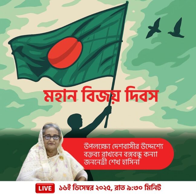 দেশবাসীর উদ্দেশ্যে বক্তব্য রাখবেন বঙ্গবন্ধু কন্যা জননেত্রী শেখ হাসিনা