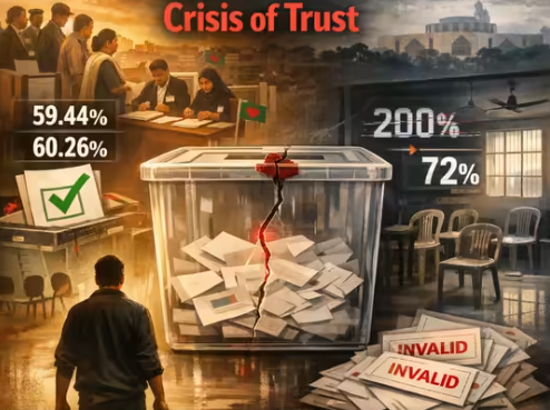 In Rajshahi–4, turnout was initially reported above 200% before being revised to 72%, raising concerns about data accuracy. Social media also circulated images of quiet polling stations and claims of irregularities.