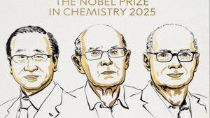 রসায়নবিজ্ঞানে বিশেষ অবদানের জন্য ২০২৫ সালের নোবেল পুরস্কার পেয়েছেন তিনজন। যৌথভাবে পুরস্কার পেয়েছেন কিয়োটো বিশ্ববিদ্যালয়ের সুসুমু কিতাগাওয়া এবং মেলবোর্ন বিশ্ববিদ্যালয়ের রিচার্ড রবসন ও ওমর এম. ইয়াঘি। ‘মেটাল-অর্গানিক ফ্রেমওয়ার্ক’ উন্নয়নের জন্য তাদের নোবেল পুরস্কার দেয়া হয়েছে। আজ বুধবার (৮ অক্টোবর) সুইডেনের স্থানীয় সময় বেলা ১১টা ৪৫ মিনিটে (বাংলাদেশ সময় বিকাল ৩টা ৪৫ মিনিটে) রসায়নে নোবেল জয়ীর নাম ঘোষণা করেছে রয়্যাল সুইডিশ অ্যাকাডেমি। ঘোষণায় বলা হয়েছে, বিজয়ীরা এমন বিশাল আণবিক কাঠামো তৈরি করেছেন যার মধ্য দিয়ে গ্যাস এবং অন্যান্য রাসায়নিক পদার্থ প্রবাহিত হতে পারে। এই মেটাল-অর্গানিক তথা ধাতু-জৈব কাঠামো মরুভূমির বাতাস থেকে পানি সংগ্রহ করতে, কার্বন ডাই অক্সাইড ধারণ করতে, বিষাক্ত গ্যাস সঞ্চয় করতে বা রাসায়নিক বিক্রিয়া ঘটাতে ব্যবহার করা যেতে পারে। এর আগে গত সোমবার (৬ অক্টোবর) চলতি ২০২৫ সালের প্রথম নোবেল ঘোষণা করা হয়। জানানো হয় চিকিৎসাবিজ্ঞানে নোবেলজয়ীর নাম। পেরিফেরাল ইমিউন টলারেন্স নিয়ে গবেষণার জন্য এ বছর চিকিৎসাবিজ্ঞানে যৌথভাবে নোবেল জিতেছেন যুক্তরাষ্ট্রের মেরি ই. ফ্রাঙ্কো ও ফ্রেড রামসডেল এবং জাপানের শিমন সাকাগুচি। গতকাল মঙ্গলবার (৭ অক্টোবর) পদার্থবিজ্ঞানে নোবেল পুরস্কার ঘোষণা করা হয়। পেয়েছেন যুক্তরাষ্ট্রের ক্যালিফোর্নিয়া বিশ্ববিদ্যালয়ের তিন মার্কিন বিজ্ঞানী জন ক্লার্ক, মিশেল এইচ ডেভোরেট ও জন এম মার্টিনিস। বৈদ্যুতিক বর্তনীর মধ্যে স্থূল কোয়ান্টাম যান্ত্রিক টানেলিং এবং শক্তির কোয়ান্টাইজেশন আবিষ্কারের জন্য নোবেল দেয়া হয়েছে তাদের। আগামী বৃহস্পতিবার (৯ অক্টোবর) বিকাল ৫টায় সাহিত্যে এবং ১০ অক্টোবর বিকাল ৩টায় শান্তিতে নোবেল পুরস্কার বিজয়ীদের নাম ঘোষণা করা হবে। এরপর ১৩ অক্টোবর বিকাল ৩টা ৪৫ মিনিটে ঘোষণা করা হবে অর্থনীতিতে নোবেল পুরস্কার বিজয়ীর নাম।