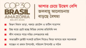 আমাজন অরণ্যের তীরে ব্রাজিলের বেলেম শহরে আগামী বুধবার শুরু হচ্ছে জাতিসংঘের ৩০তম জলবায়ু পরিবর্তন সম্মেলন (কপ৩০)। যেখানে প্রায় ১৫০ দেশের প্রতিনিধি জলবায়ু সংকট মোকাবিলার পথ নির্ধারণে যূথবদ্ধ হচ্ছেন। তবে এবার উড়োজাহাজ ও হোটেলের খরুচে ভাড়ার কারণে অনেক দেশের প্রতিনিধি দলের আকার ছোট থাকছে। যাতায়াত ও আবাসন খরচ দুই থেকে তিন গুণ হওয়ায় সবচেয়ে বেশি প্রভাব পড়েছে উন্নয়নশীল ও জলবায়ু ঝুঁকিপূর্ণ দরিদ্র দেশগুলোর ওপর। জলবায়ু ন্যায়বিচারের আলোচনায় তাদের উপস্থিতি কম হবে। ফলে কপের এই আসরে ভুক্তভোগী দেশের কণ্ঠস্বর ক্ষীণ হয়ে পড়তে পারে। পুরো সম্মেলন একতরফা হয়ে পড়বে বলে শঙ্কা করছেন পর্যবেক্ষকরা। অনেক দরিদ্র দেশ ব্রাজিল সরকারের কাছে সাশ্রয়ী ফ্লাইট ও বিকল্প আবাসনের দাবি জানালেও সাড়া মেলেনি। অন্যদিকে, রাজনৈতিক টানাপোড়েন, অর্থনৈতিক ধীরগতি, করপোরেট আধিপত্য এবং শক্তিধর দেশের চাপে প্রত্যাশা আগের চেয়ে অনেক কম। এমন প্রেক্ষাপটে প্রশ্ন উঠছে– কপ৩০ কি আন্তর্জাতিক জলবায়ু কূটনীতির ওপর আস্থা ফিরিয়ে আনতে পারবে। নাকি আবারও প্রতিশ্রুতির ফানুস চুপসে যাবে! বিশেষজ্ঞরা বলছেন, তিন দশকের পুরোনো এই সম্মেলন এখন অতিমাত্রায় আমলাতান্ত্রিক ও রাজনৈতিক হয়ে পড়েছে, যা বাস্তব পদক্ষেপ থেকে অনেকটাই বিচ্ছিন্ন। তাদের মত, সময় এসেছে পুরো প্রক্রিয়া পুনর্গঠনের। জাতিসংঘের প্রাথমিক তথ্য অনুযায়ী, এবার কপ৩০-এ নিবন্ধিত প্রতিনিধি মাত্র ১২ হাজার ২০০। অথচ গত বছর আজারবাইজানের বাকুতে কপ২৯-এ ৫৪ হাজার এবং ২০২৩ সালে দুবাইয়ের কপ২৮-এ ৮৪ হাজার নিবন্ধিত প্রতিনিধি ছিলেন। ব্রাজিল আশা করেছিল, অন্তত ৪৫ হাজার প্রতিনিধি থাকবে। তবে উচ্চ ভ্রমণ খরচ ও সীমিত আবাসন সেই সংখ্যা নাটকীয়ভাবে কমিয়েছে। ব্রাজিলের বেলেম শহরে প্রায় ৫৩ হাজার অতিথির জন্য আবাসন প্রস্তুত করা হলেও আয়োজকরা নানা সুযোগ-সুবিধা নিশ্চিত করতে খেই হারাচ্ছেন। উচ্চ বিমান ভাড়া, ব্যয়বহুল হোটেল ও জটিল যাত্রাপথ অনেকের অংশগ্রহণ অসম্ভব করে তুলেছে। এতে সবচেয়ে বেশি ক্ষতিগ্রস্ত হচ্ছে দক্ষিণ এশিয়ার দেশগুলো। উচ্চ খরচের কারণে বাংলাদেশও কমিয়েছে প্রতিনিধি সংখ্যা। পরিবেশ, বন ও জলবায়ু পরিবর্তন মন্ত্রণালয়ের সূত্র জানিয়েছে, কপ৩০-এ প্রধান উপদেষ্টা ড. মুহাম্মদ ইউনূস, পরিবেশ উপদেষ্টা সৈয়দা রিজওয়ানা হাসান ও সচিব ফারহিনা আহমেদ যাচ্ছেন না। তবে পরিবেশ, বন ও জলবায়ু পরিবর্তন মন্ত্রণালয়ের ১২ জনের একটি প্রতিনিধি দল কপে অংশ নেবে। পাশাপাশি প্রথমবারের মতো কপে যোগ দিতে যাচ্ছে মৎস্য ও প্রাণিসম্পদ মন্ত্রণালয়। উপদেষ্টা ফরিদা আখতারসহ দুজন সম্মেলনে যাচ্ছেন। কপে অংশ নেওয়ার ব্যাপারে মৎস্য ও প্রাণিসম্পদ উপদেষ্টা বলেন, এবার বাংলা