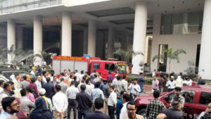 রাজধানীর সচিবালয়ের মন্ত্রিপরিষদ ভবনে আগুনের ঘটনা ঘটেছে। পরে ফায়ার সার্ভিসের কর্মীদের চেষ্টায় আগুন নিয়ন্ত্রণে এসেছে। রোববার (৩০ নভেম্বর) দুপুর ২টার দিকে অগ্নিকাণ্ডের এ ঘটনা ঘটে। আগুন লাগার পর সচিবালয়ে কর্মকর্তা-কর্মচারীদের মধ্যে আতঙ্ক ছড়িয়ে পড়ে। ফায়ার সার্ভিস থেকে জানানো হয়েছে, সচিবালয়ের নতুন ১নং ২০ তলা ভবনের ৯ম তলায় ভবনের বাইরের এগজস্ট ফ্যানে বৈদ্যুতিক গোলযোগ থেকে আগুন লেগেছিল। দুপুর ২টায় আগুন লাগার খবর পেয়ে ফায়ার সার্ভিসের একটি ইউনিট ঘটনাস্থলে পৌঁছায়। পরে আরও দুটি ইউনিট ঘটনাস্থলে যায়। তবে ইউনিটগুলোর কাজ করার প্রয়োজন হয়নি। ফায়ার সার্ভিসের কর্মীরা ফায়ার এক্সটিংগুইশার দিয়ে ২টা ১৫ মিনিটে আগুন নিয়ন্ত্রণে আনেন। প্রাথমিকভাবে অগ্নিকাণ্ডের এ ঘটনায় ক্ষয়ক্ষতির পরিমাণ জানাতে পারেনি ফায়ার সার্ভিস।