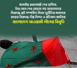 মাননীয় প্রধানমন্ত্রী শেখ হাসিনা, তাঁর বোন শেখ রেহানা সহ অন্যান্যদের বিরুদ্ধে প্লট সম্পর্কিত মিথ্যা দুর্নীতির মামলার রায়ের বিরুদ্ধে তীব্র নিন্দা ও প্রতিবাদ