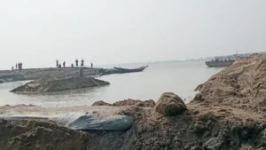 ‘বাঁধের মাটি বড় বড় খণ্ড হয়ে ঝুপঝাপ শব্দে ভেঙে পড়ে’